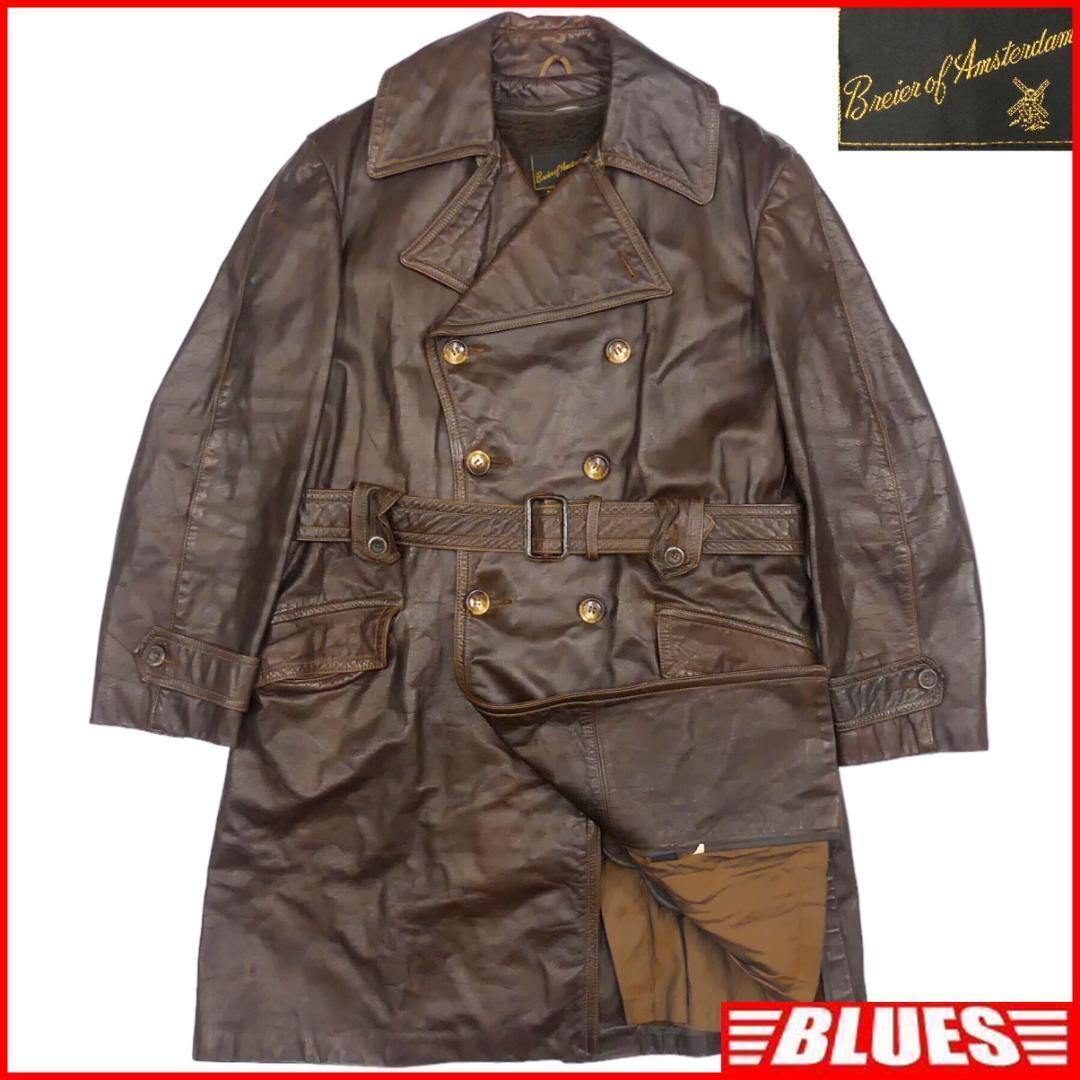 - 即決★breier of amsterdam★メンズM レザートレンチコート ブライヤーオブアムステルダム 38 茶 ライナー着脱 ビンテージ