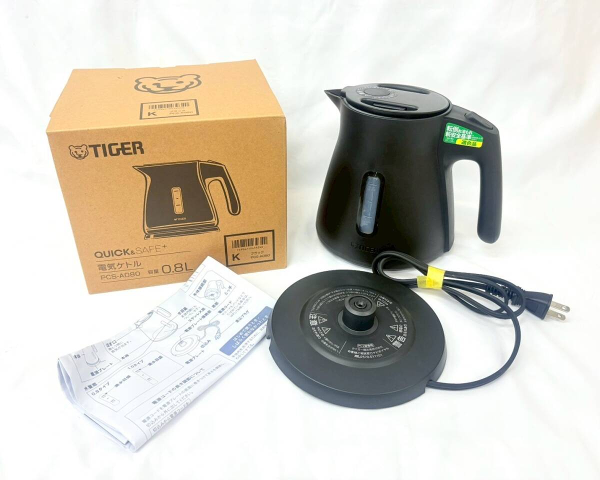 - D7762*0.5 通電OK TIGER タイガー QUICK&SAFE+ 電気ケトル PCS-A080 容量0.8L ブラック 取扱説明書・箱付き