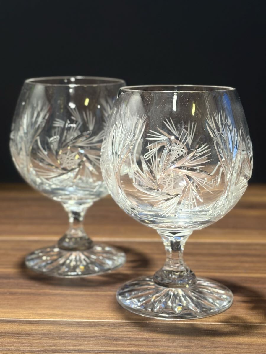 - 【ペアセット】ブランデーグラス コニャックグラス ウィスキーグラス ハンドカット ブランド不明 コレクション ビンテージ【管B977-2508】