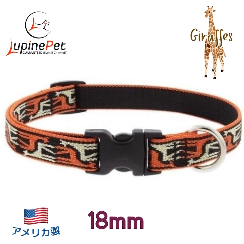> ワンタッチ首輪・Mサイズ・18mm幅キリン柄Giraffes 33-56cm LUPINEルパイン アメリカ製 軽量丈夫 製造終了レア