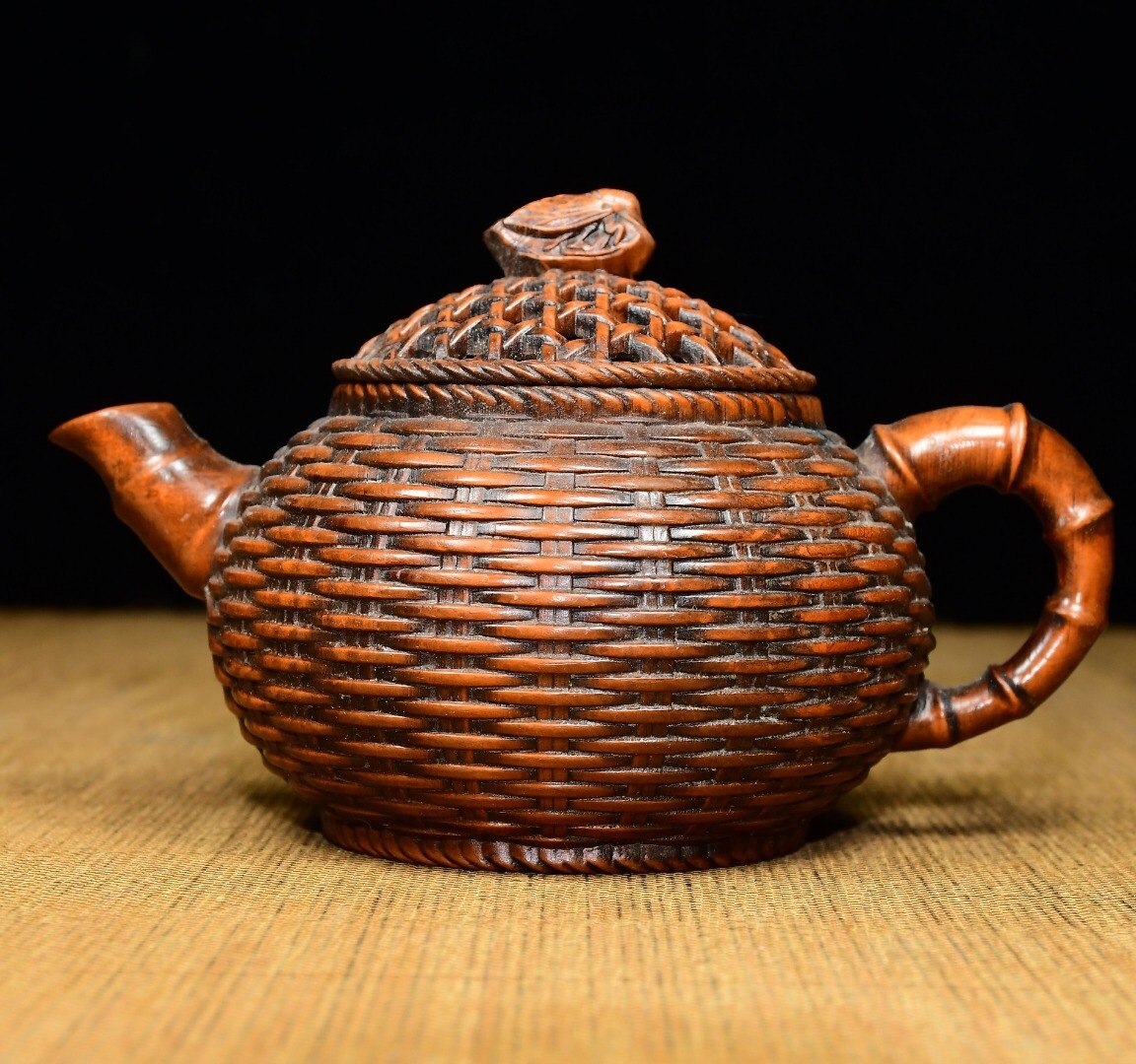 - 『館蔵珍品 黄楊木製 細密彫 編織壺 置物 賞物』稀少珍蔵品 古賞物 貴重物品 収蔵品 中国古美術 時代物 古董品