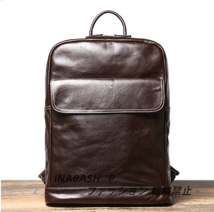 - 美品登場☆ バックパック メンズ 本革 リュックサック ブラウン レザー アウトドア 通勤通学 トラベルバッグ