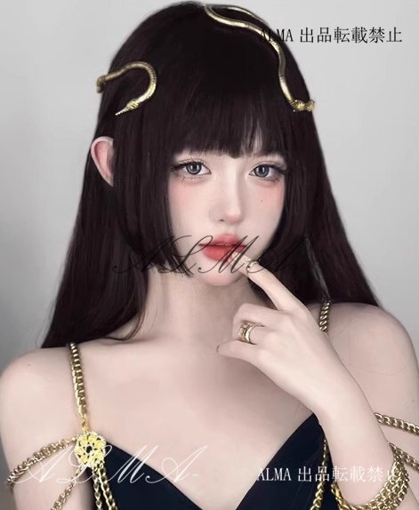 - 新品人毛 姫カット ウィッグ ロングヘア スイート系 黒髪ストレート つむじ部分手植え 自然に見えますフルウィッグ