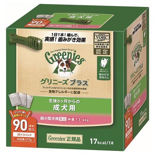 - 【送料無料】グリニーズ プラス 成犬用 超小型犬用 ミニ 1.3~4kg 90本×2コ