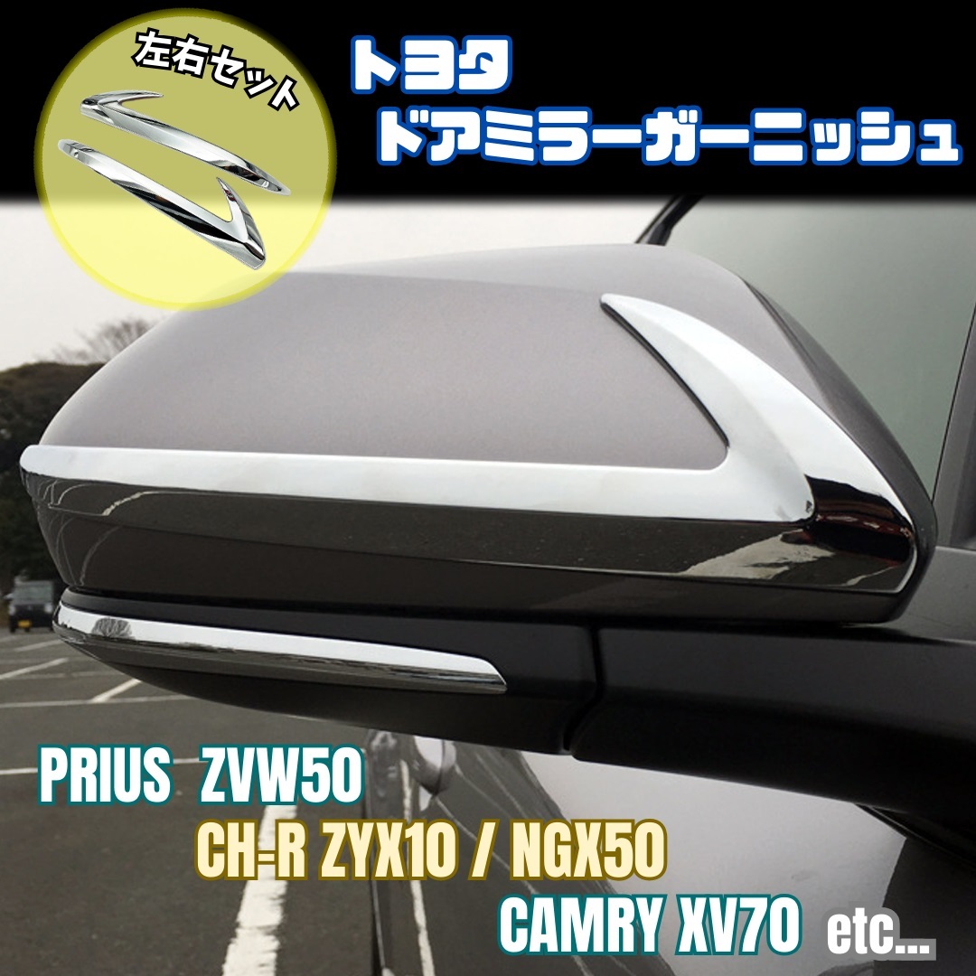 > 【トヨタ】 サイドミラーガーニッシュ / メッキ / プリウス50系 ZVW50 PHV カムリ70系 AXVH70 CH-R ZYX10 NGX50 等 / ドアミラーカバー