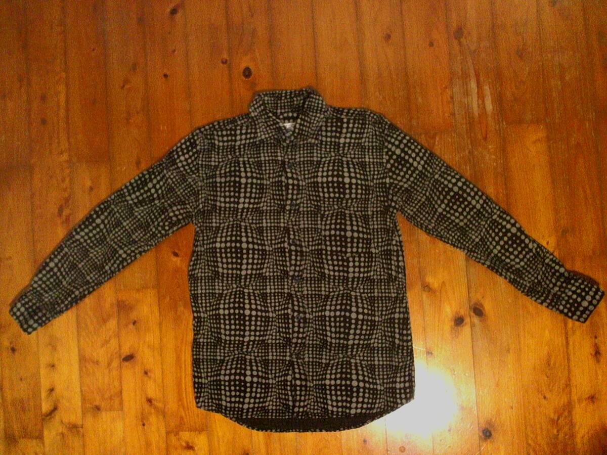 - ☆イッカ【ikka】細畝コーデュロイ 長袖シャツ M 黒グレー 幾何学模様