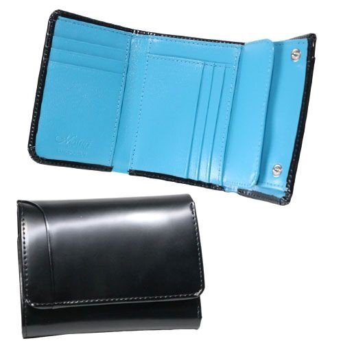 > Maturi マトゥーリ エグゼクティブ コードバン 馬革 牛革 三つ折り財布 コンパクトウォレット MR-501 BK/BLUE 定価39800円