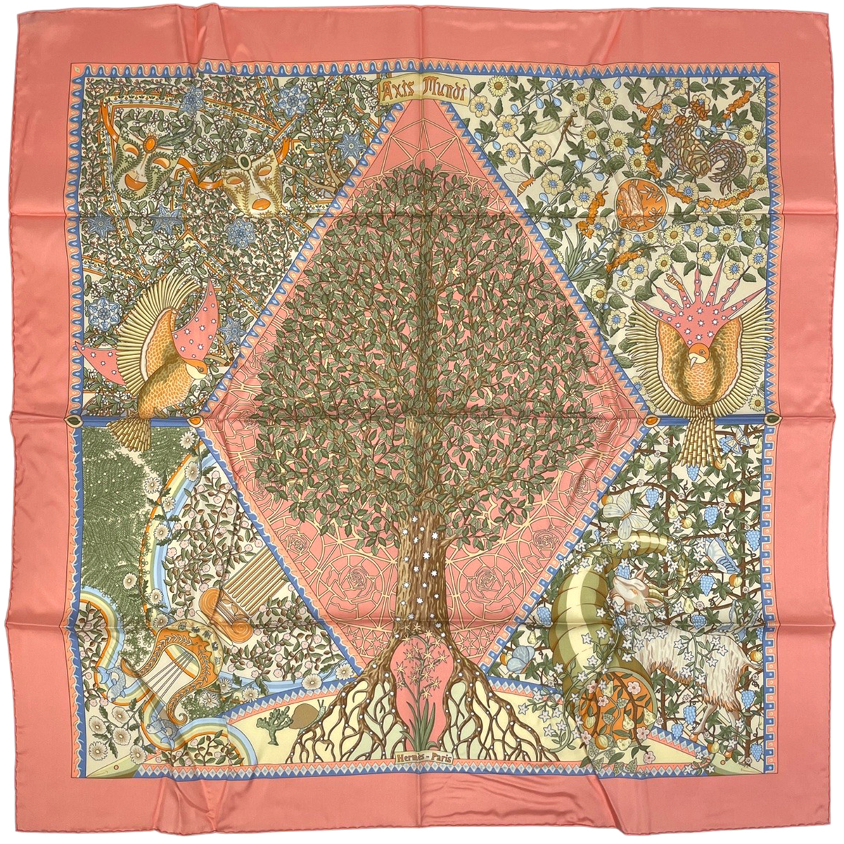 > エルメス HERMES カレ 90 Axis Mundi 世界の中心軸 スカーフ シルク サーモンピンク マルチカラー レディース 【中古】