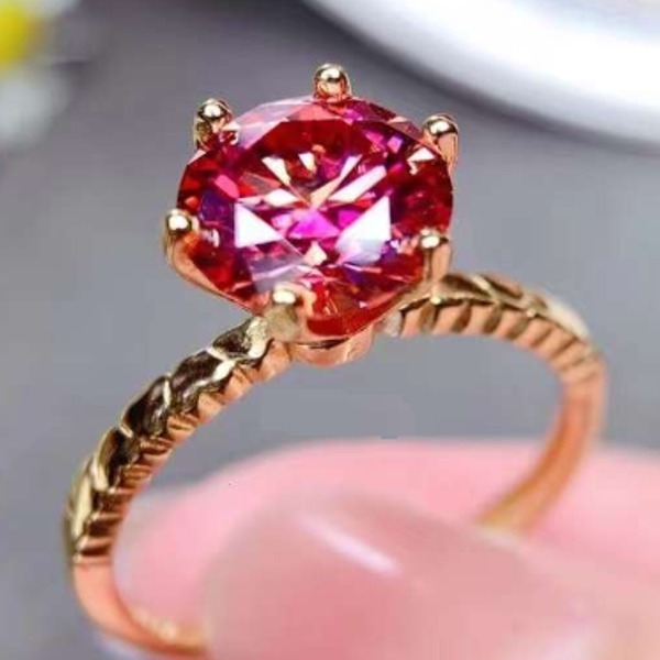 > 2カラットオレンジ赤モアッサナイトダイヤモンドソリティアリング、鑑別付き、残り時間4日までに最初に入札すると開始価格で購入可能_Yu