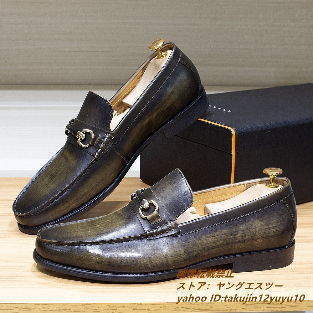 - 最高級★定価9万 本革 レザーシューズ 新品 ビジネスシューズ メンズ 職人手塗仕上げ 超希少 ローファー 紳士靴 牛革 革靴 24.5cm