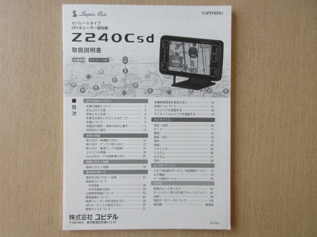 - ★a9411★ユピテル スーパーキャット セパレートタイプ GPS レーダー探知機 Z240Csd 取扱説明書 説明書★訳有★