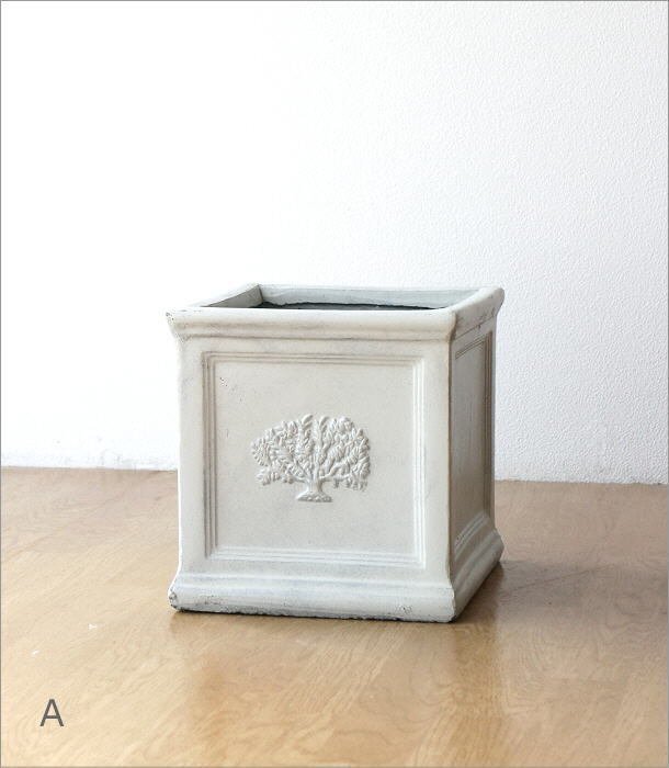 > 鉢カバー おしゃれ スクエア アンティーク かわいい 北欧 ファイバーグラスセメントポット M 【Aカラー】 送料無料(一部地域除く) mty5388a
