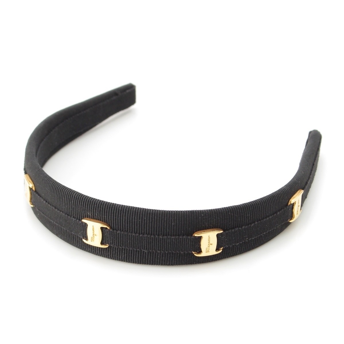 - サルヴァトーレフェラガモ ヴィンテージ ヴァラ金具 グログランテープ カチューシャ ヘアアクセサリー ブラック GPゴールド【中古】