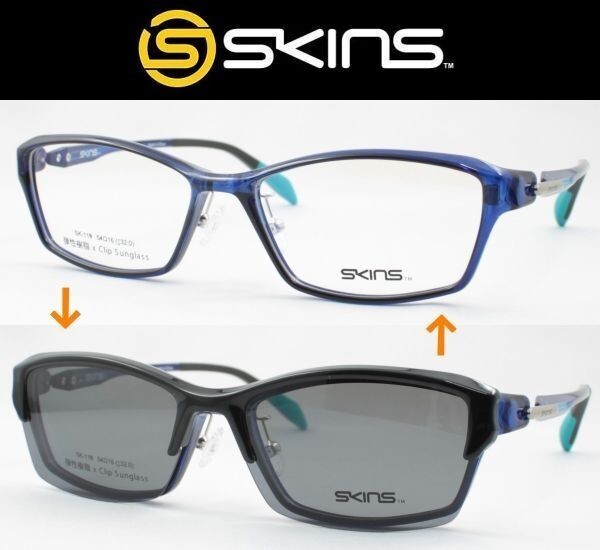 - SKINS スキンズ メガネフレーム SK-119-4 マグネットクリップ偏光サングラス 度付きレンズ可 近視 遠視 乱視 老眼鏡 遠近両用 伊達メガネ