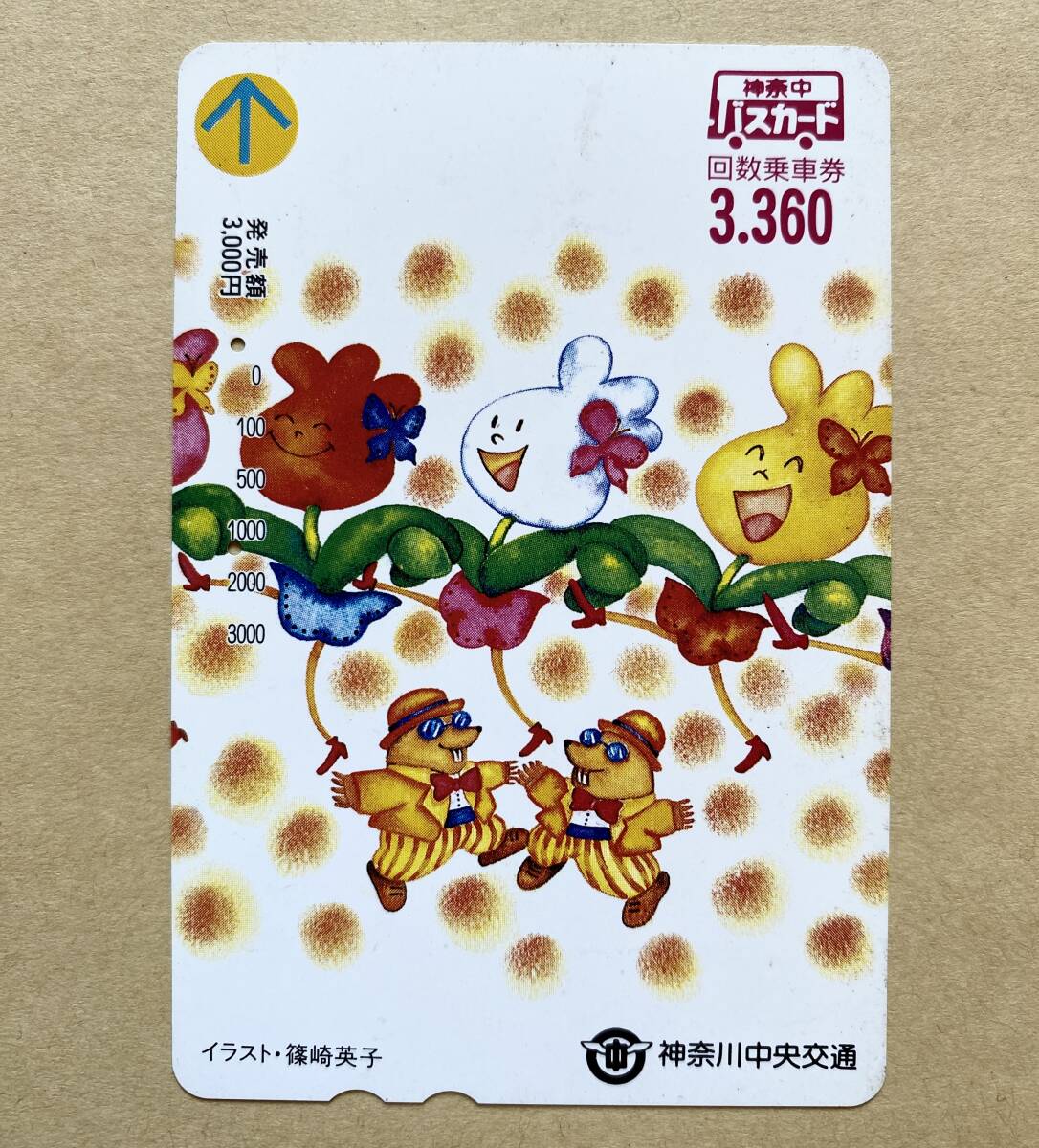 - 【使用済】 バスカード 神奈川中央交通 イラスト 篠崎英子