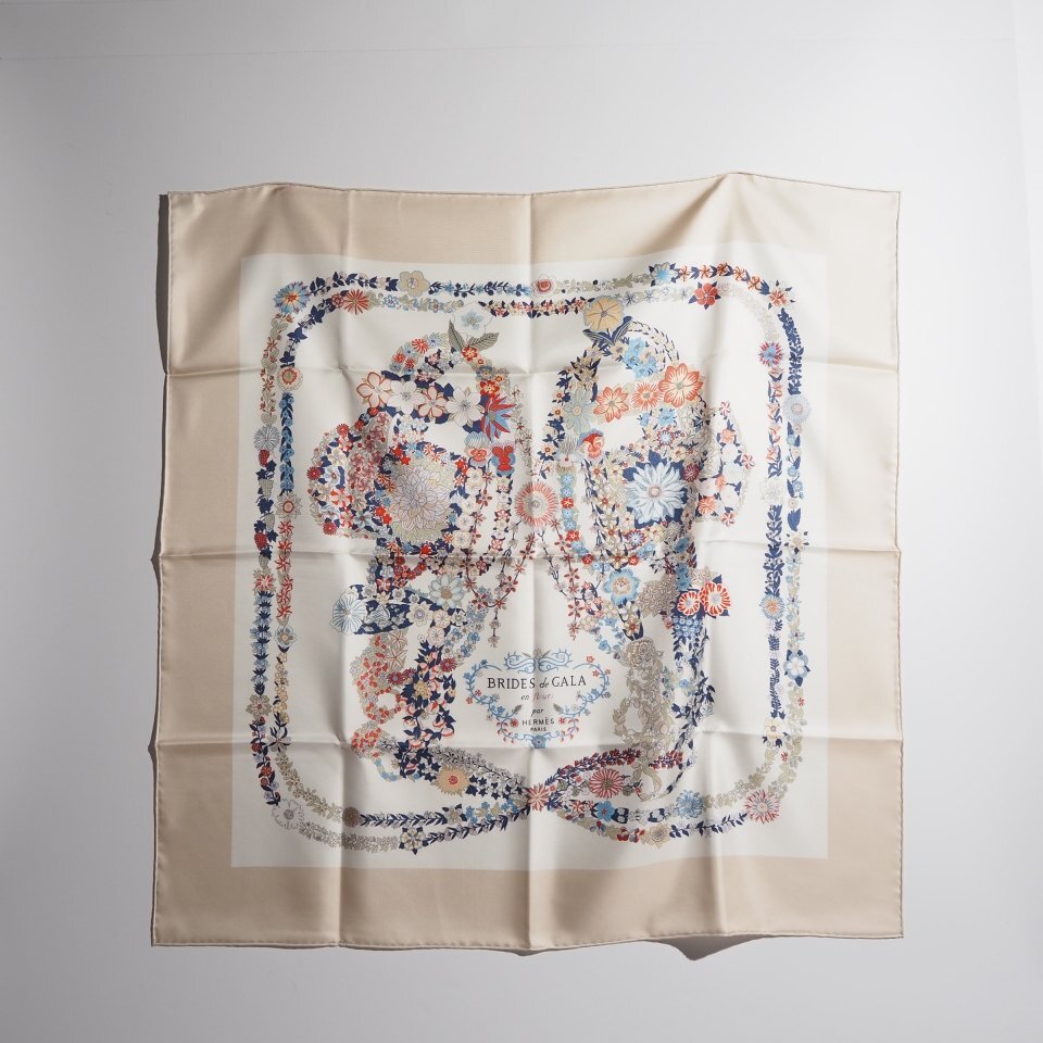 - P9298P ▼HERMES エルメス▼ 25SS カレ90 ブリッド・ドゥ・ガラ・アン・フルール サーブル ホワイト ブルー シルクスカーフ rb mks