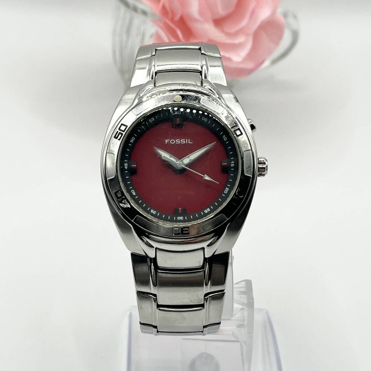 - 《訳あり》FOSSIL★フォッシル★BIG TIC★ビッグティック★クォーツ 腕時計★メンズ★シルバー×レッド★管理604d