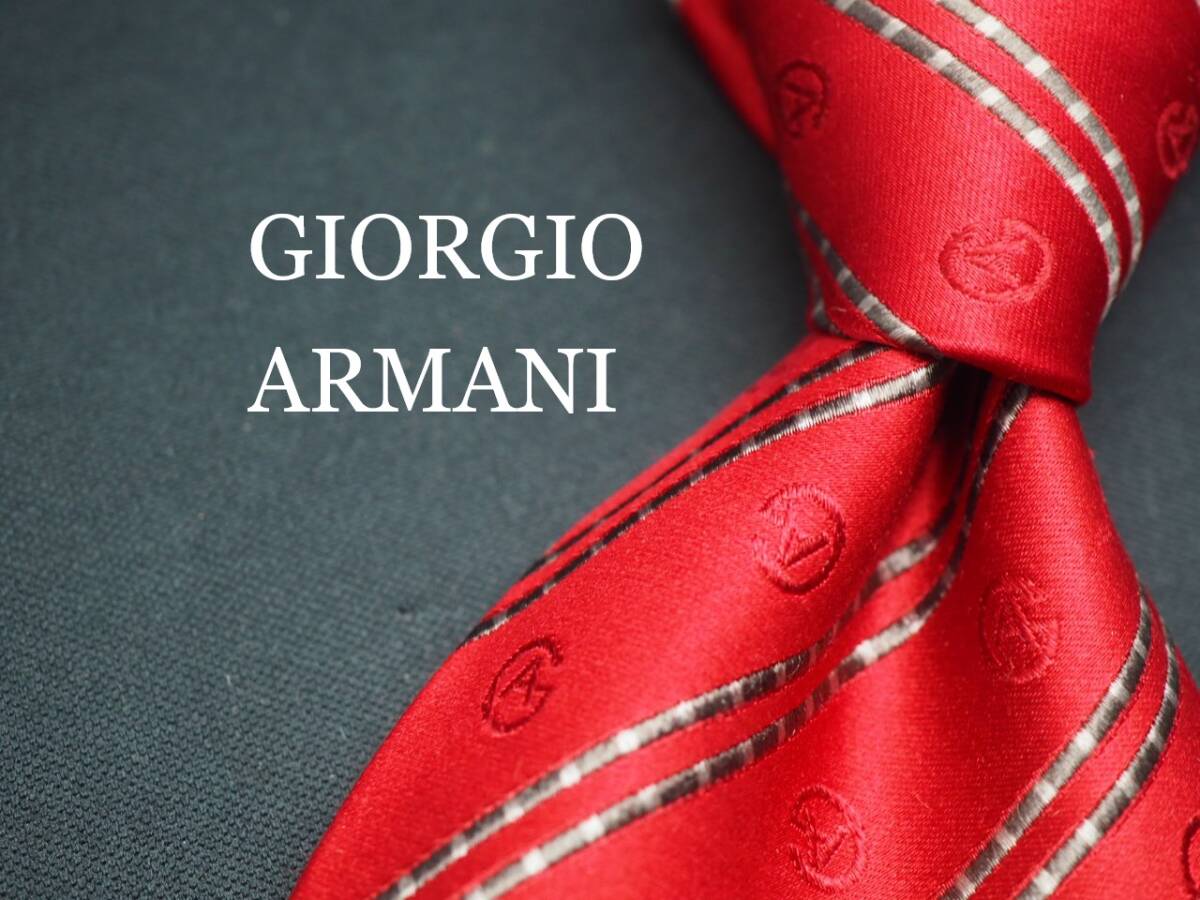 - 美品【GIORGIO ARMANI ジョルジオアルマーニ】 F1828 赤系 ロゴ SILK ブランド ネクタイ 古着 良品