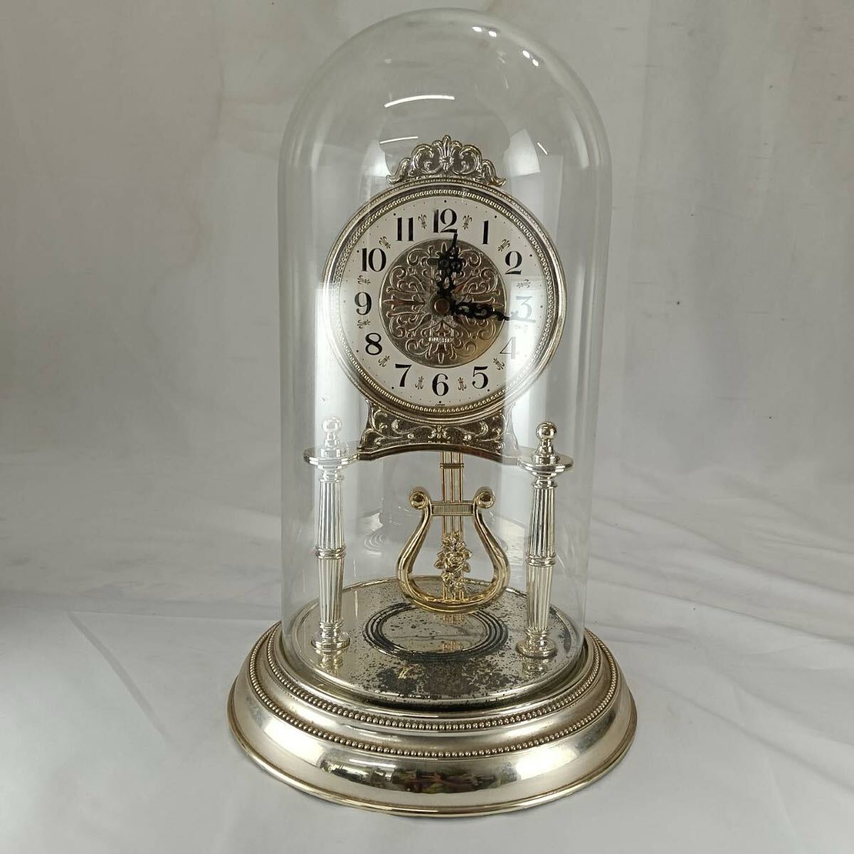 - 【レア】 置き時計 ガラスドーム 置時計 昭和レトロ 振り子時計 ゴールド色 金色 ヴィンテージ インテリア 置物