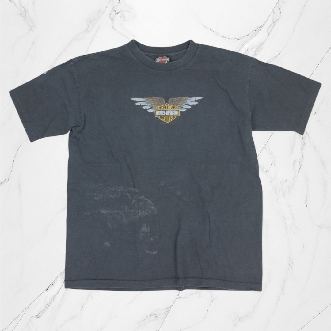 > 古着 90s USA製 Harley Davidson T-Shirts Washed Black ハーレーダビッドソン Tシャツ シングルステッチ 半袖 【Vintage】
