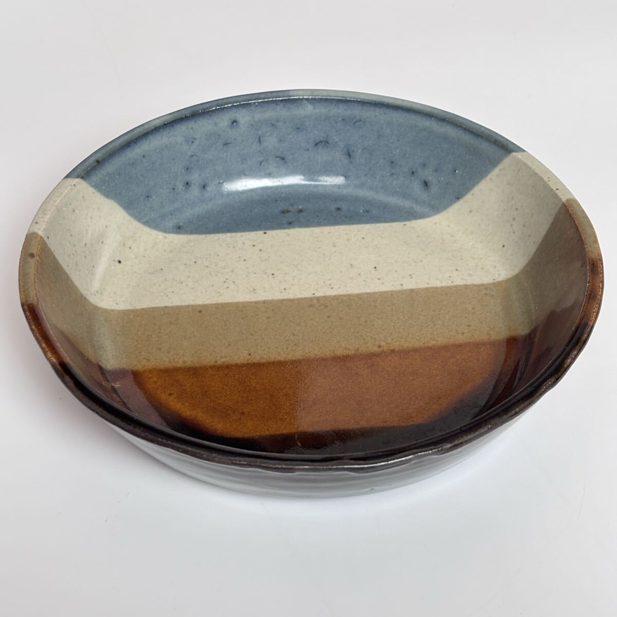 - 【佐々木康弘*益子焼*陶器*深皿*直径約19.0cm×高さ約4.0cm*掛け分け*柿釉*糠白釉*青磁釉*並白釉*本黒釉】