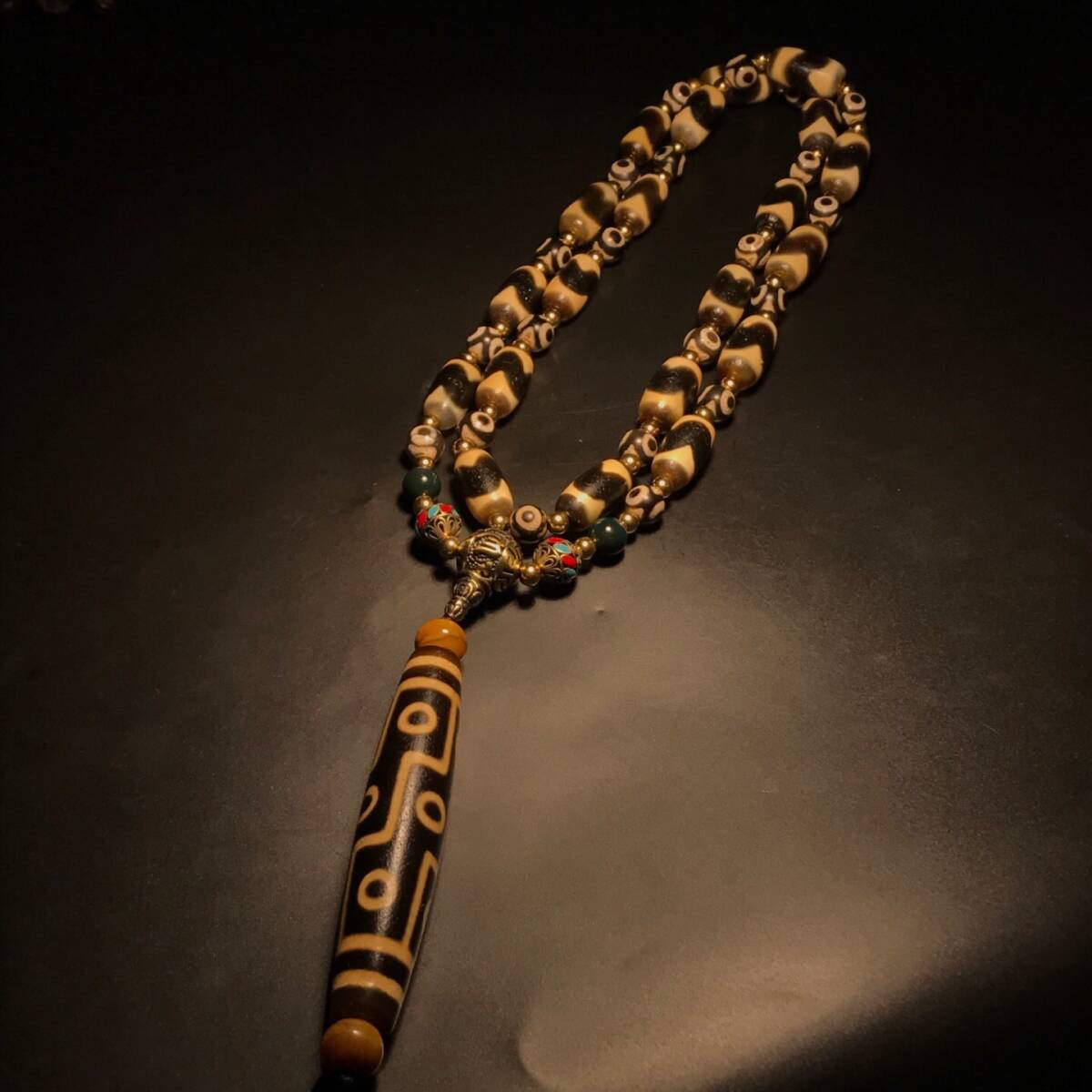 > 『館蔵珍品 瑪瑙製 細密彫 虎牙天珠 九眼天珠ネックレス 根付 裝身具』稀少珍蔵品 古賞物 貴重物品 収蔵品 中国古美術 時代物 古董品