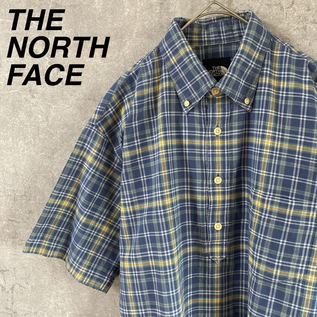 > THE NORTH FACEチェック柄半袖シャツネイビー/イエローMサイズメンズ
