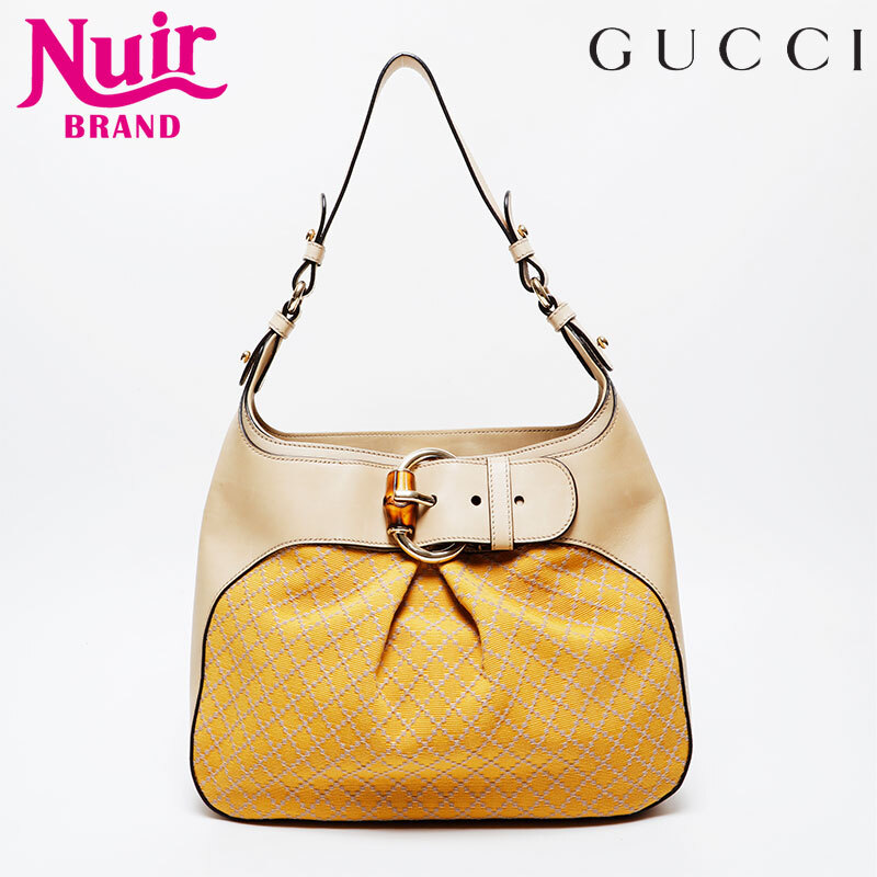> グッチ GUCCI ショルダーバッグ キャンバス バンブー ワンショルダー イエロー