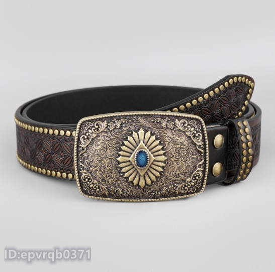> ベルト※新入荷 メンズ レザーベルト ピンバックル式 バックル 柄物 革ベルト ポンチ付き 長さ調整可能 /茶色