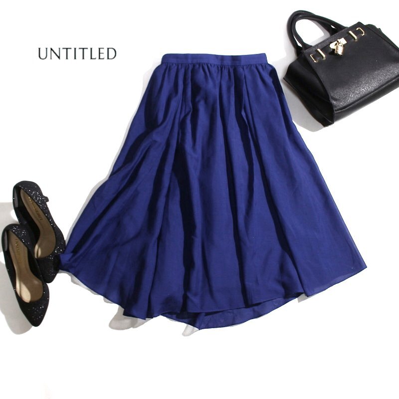 > アンタイトル UNTITLED 株) ワールド 春 夏 透け オーガンジー フレアスカート 1 ブルー 青 S オフィス 通勤 綺麗め ミセス 綺麗め お洒落