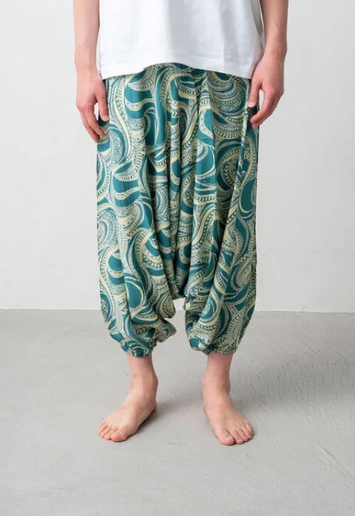- 新品未使用 タグ付き 男女兼用 ふんわり サルエルパンツ エスニック アジアン ヒッピー ゴムウエスト フリーサイズ レーヨン インド ②