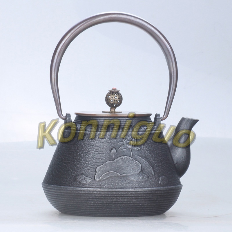 - 南部鉄瓶 魚絵柄 塗装なし 茶壺 提梁壺 煮茶壺 茶道具 職人作り 鉄びん 鉄分補給 鉄瓶 焼かん GY57