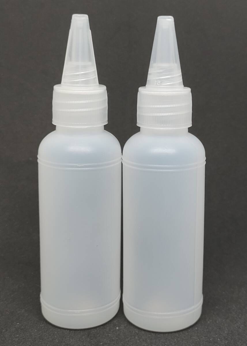 > プラスチック液体ボトル 50ml 2本セット② 調味料 ケース ボンド 注油 薬 コスメ シャンプー リンス 詰め替え容器 アロマオイル