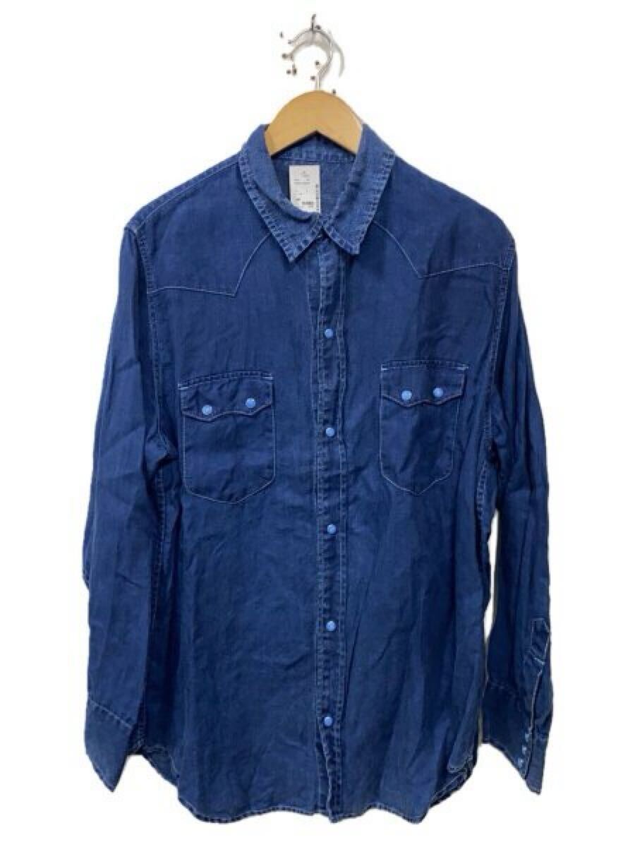 > 【希少】PORTER CLASSIC LINEN WESTERN SHIRTポータークラシック リネン ウエスタンシャツ インディゴ 藍染 メンズL 日本製 定価41,800円