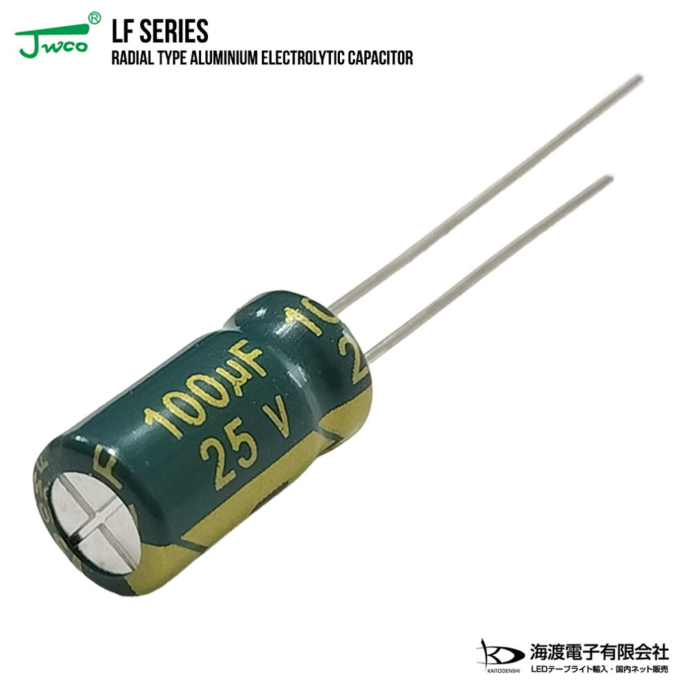 - アルミ電解コンデンサ(ラジアルリード形) 25V 100uF 6.3×12mm JWCO LFシリーズ 50個