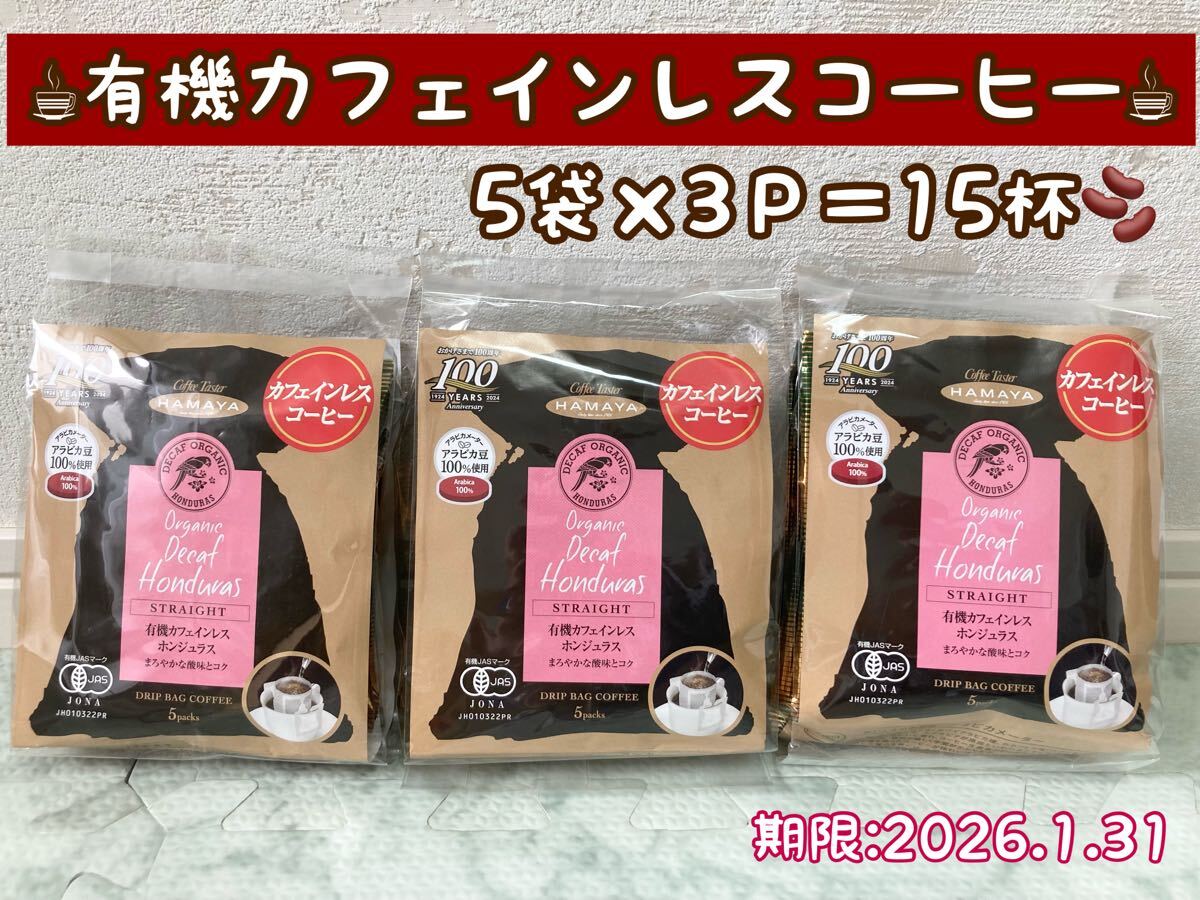 - 【3個】ハマヤ ドリップバッグ 有機カフェインレス ホンジュラス 計15杯分