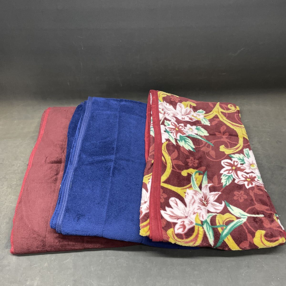 > G3088 【寝具 まとめて!】未使用品? 美品 薄手毛布×1 敷パット×2 エンジ ネイビー シングルサイズ 養生毛布 保管品 現状品