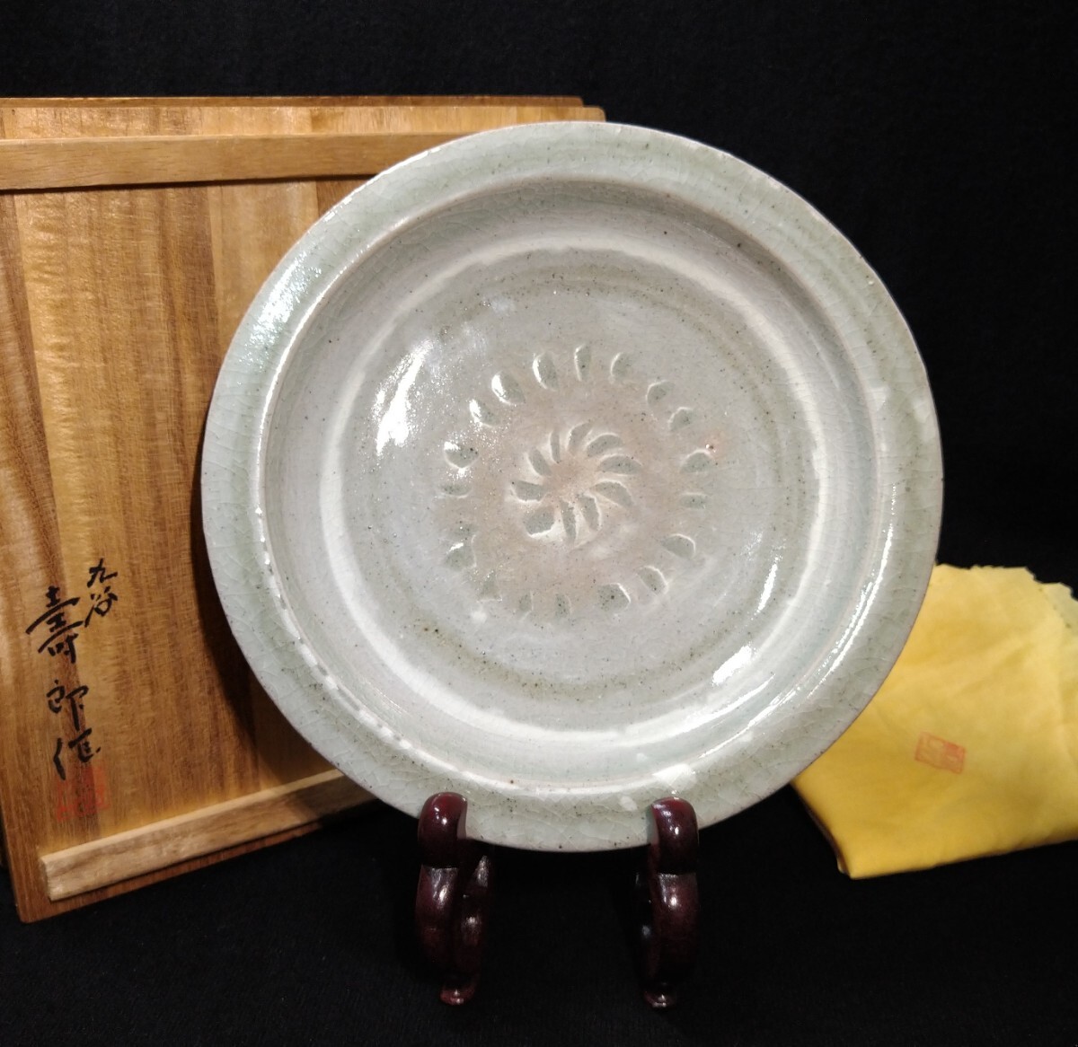 > 伊豆蔵寿郎 「化粧模様皿」 19cm 中皿 共箱 共布 一の瀬窯 九谷焼 亜細亜美術交流会理事 師:日根野作三/沢村滋郎 b-57a4538-cdd