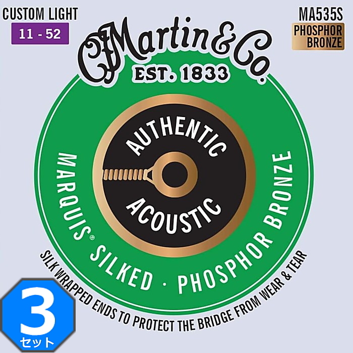 - 3セット Martin MA535S Marquis Silked Custom Light 011-052 Phosphor Bronze マーチン アコギ弦