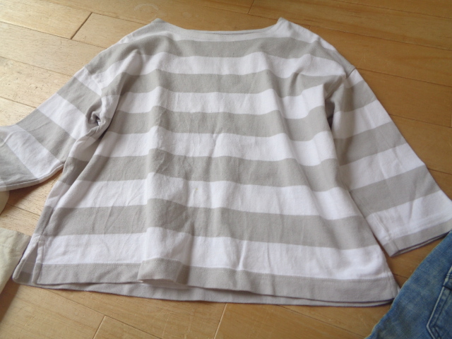 > 無印良品 コットン100% ボートネック レディース 七分袖カットソー ドロップショルダー☆ M~L 太ボーダー 美品♪