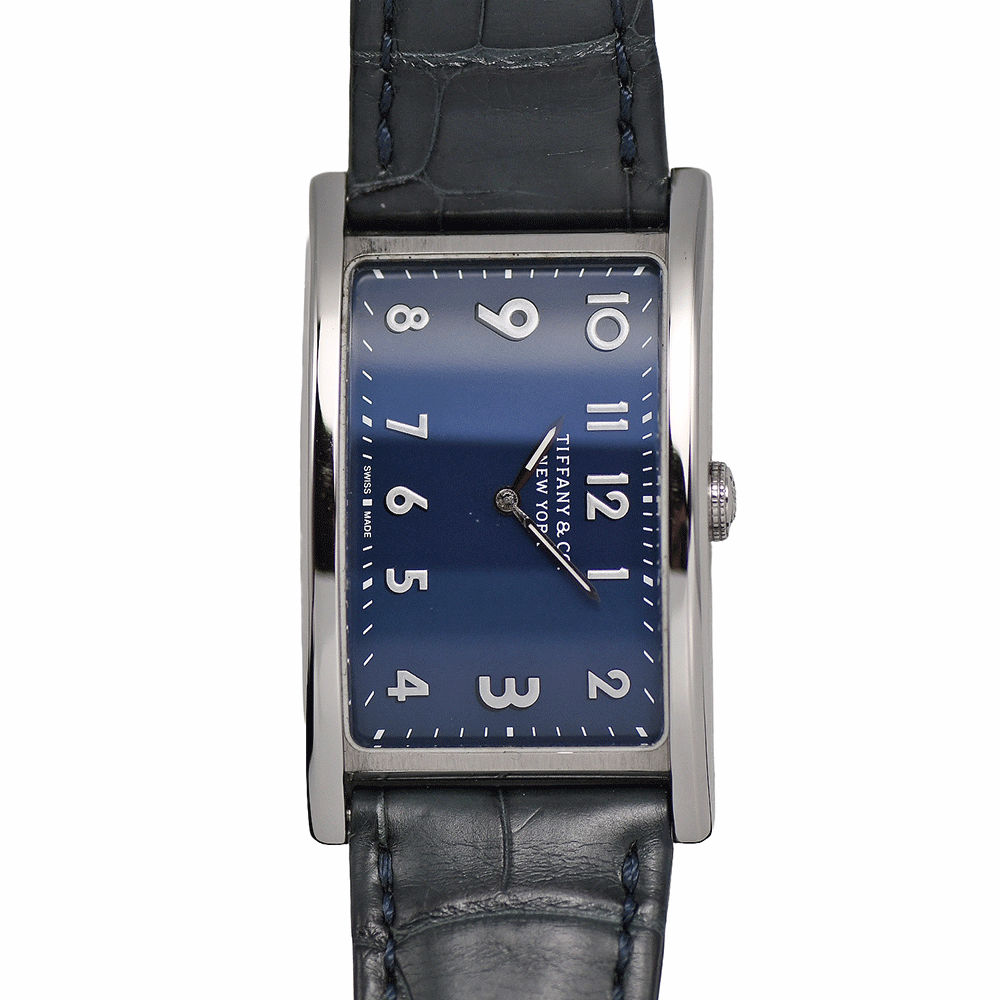 - ティファニー TIFFANY&Co. イーストウエスト 141550133 クォーツ スクエア型 ネイビー文字盤 レディース 腕時計 研磨仕上げ済み 中古