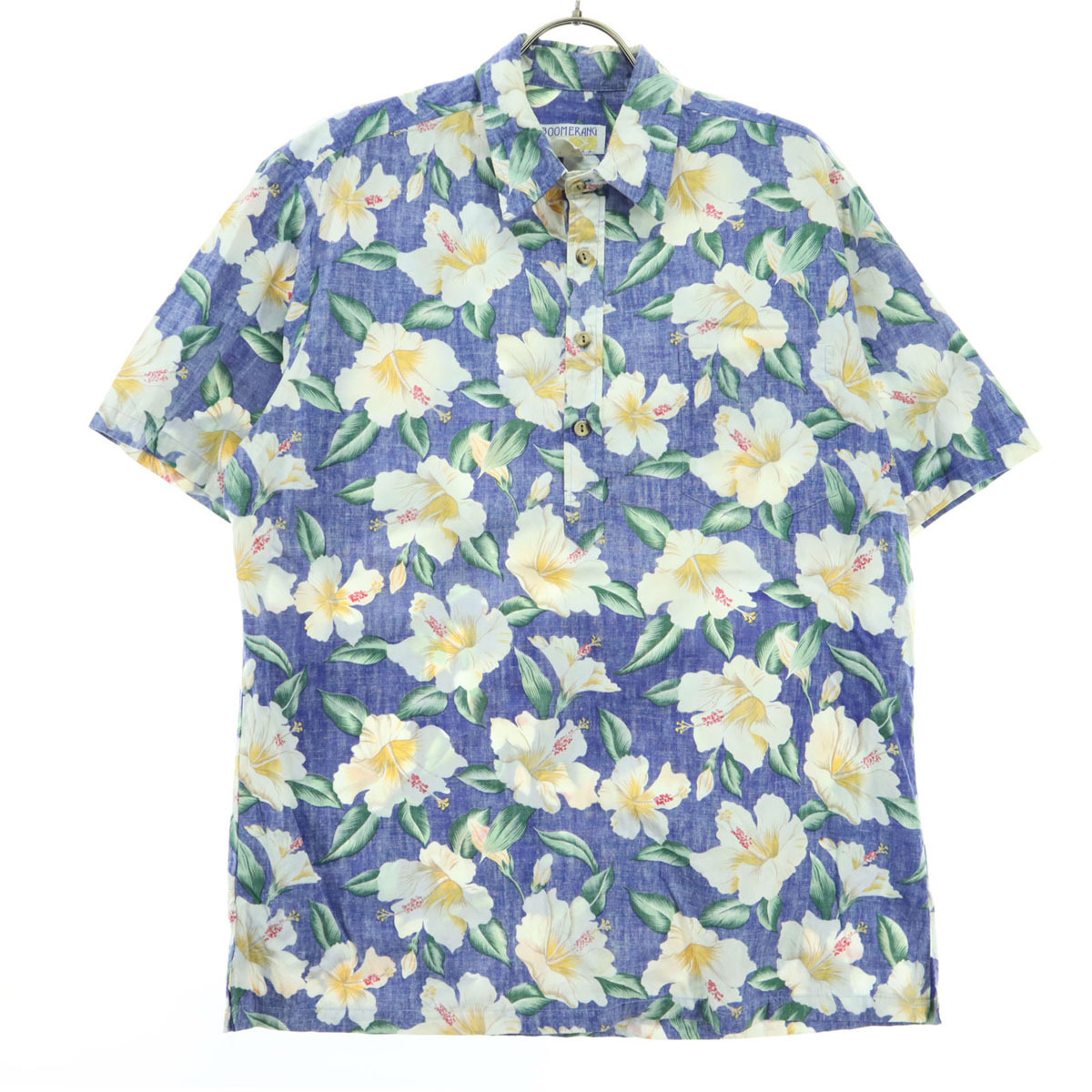 - 美品 BOOMERANG ブーメラン 90s オールド ハワイ製 シングルステッチ 半袖 アロハシャツ L ブルー系 メンズ