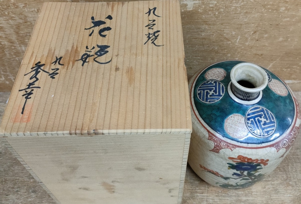 - 九谷焼 司峰 壷 花瓶 生花 飾り 置物 木箱 工芸品 花器