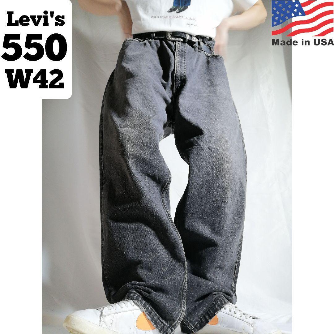 > アメリカ製 90年代 リーバイス Levi's 550 RELAXED FIT ブラックデニム USA製 テーパードデニムパンツ ジーンズ フェード 90s 古着 3672
