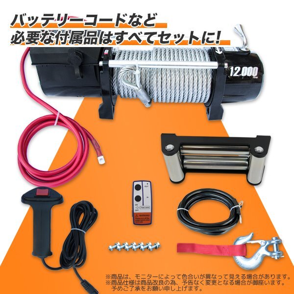 - 電動ウインチ 無線リモコン付 最大牽引 12000LBS 5443kg DC12V 電動 ウインチ 引上げ機 牽引 防水【送料無料】