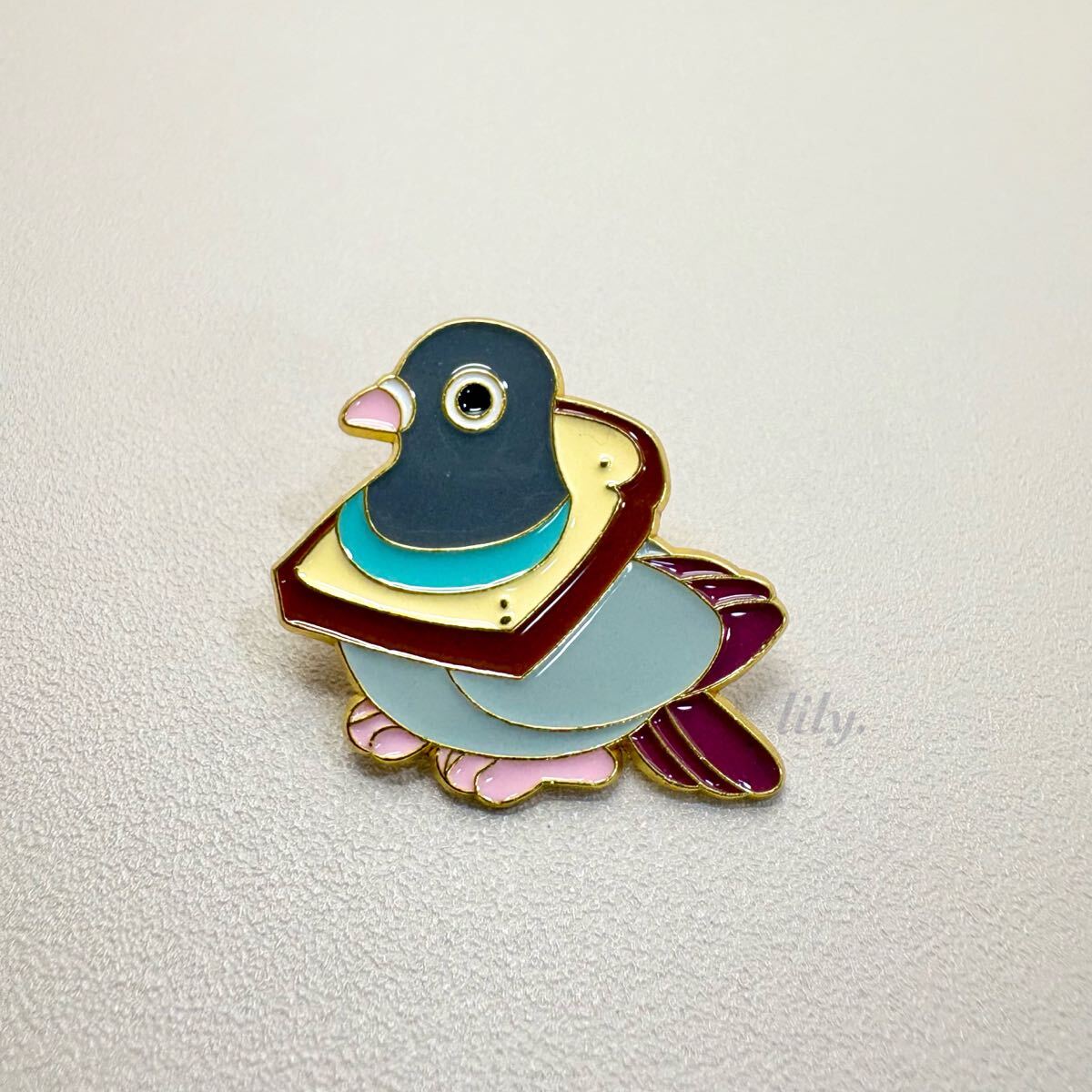 - 【ピンバッジ】ハト フランスパン 食パン 鳩 鳥 かわいい