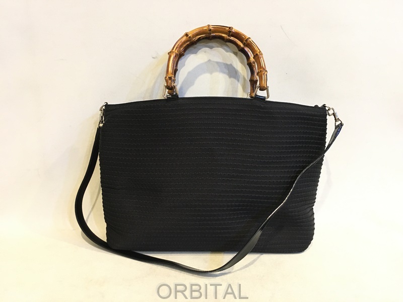 - 二子玉)GUCCI グッチ バンブーハンドル2WAYバッグ トート ショルダー ブラック 黒 ビンテージ