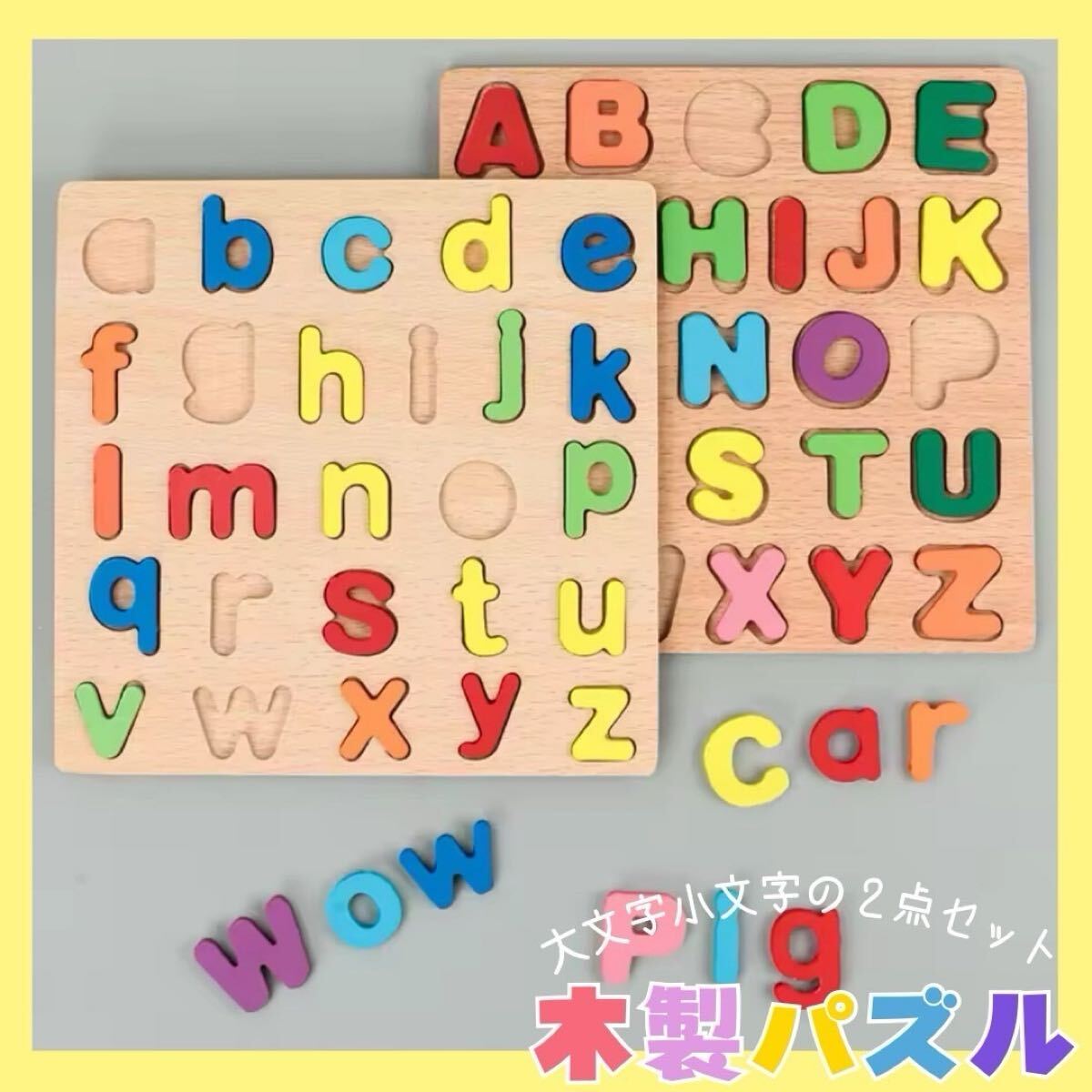 - 木製 パズル 英語パズル アルファベット モンテッソーリ 知育玩具 大文字 小文字
