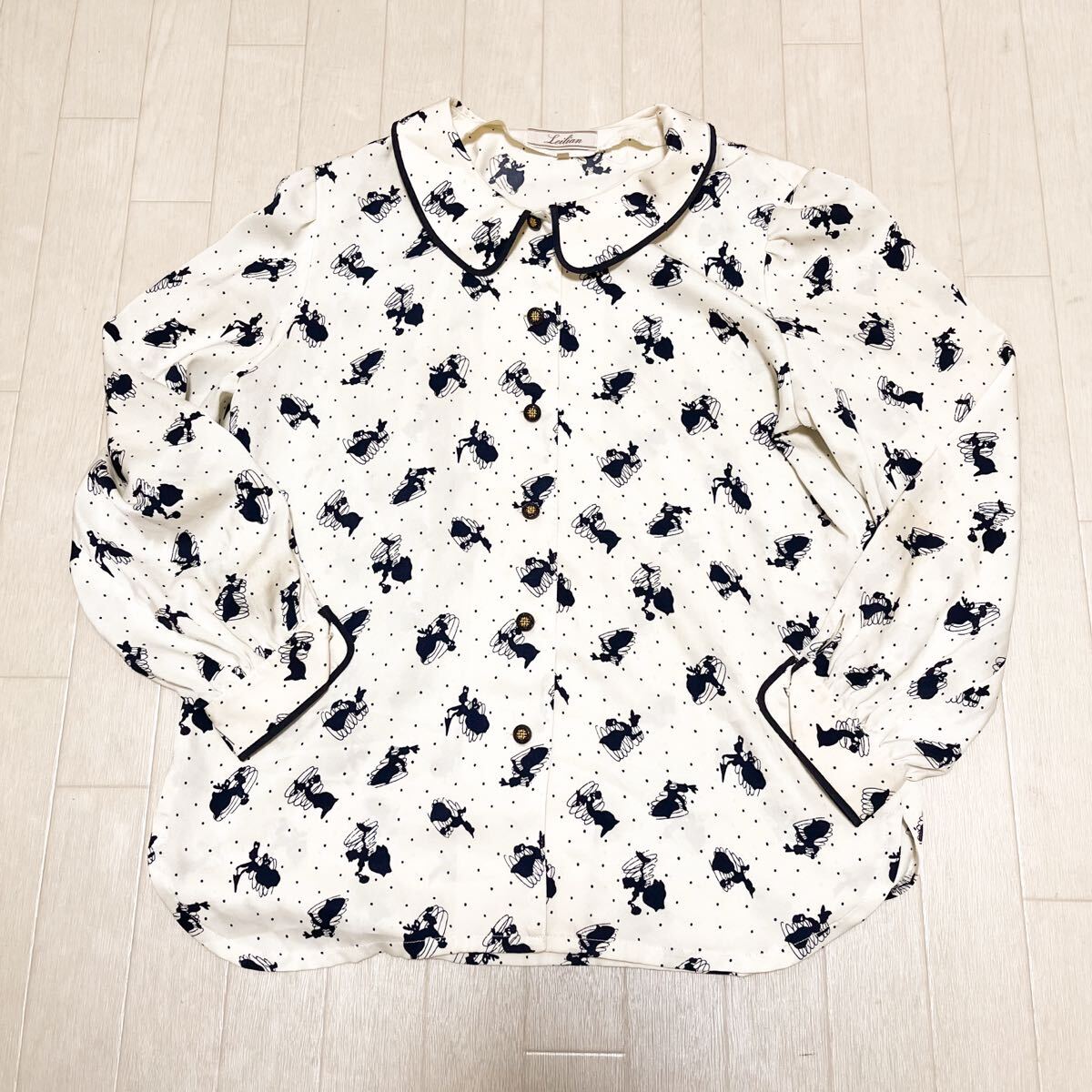 > 和829★ Leilian レリアン 長袖 ボタンシャツ 総柄 ドット 11 ホワイト ネイビー レディース