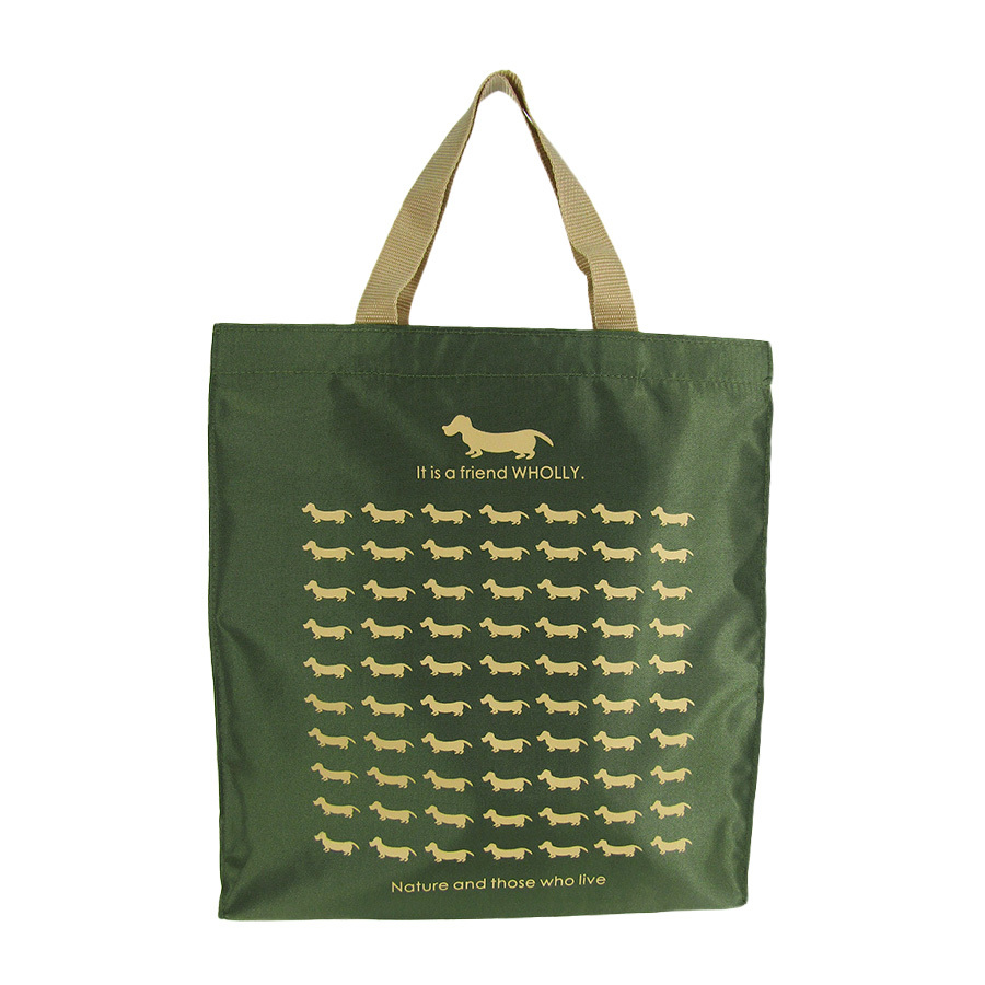 3L13-01【014.カーキ】ドッグプリント角型手提げバッグ [WHOLLY] [ウォーリー]